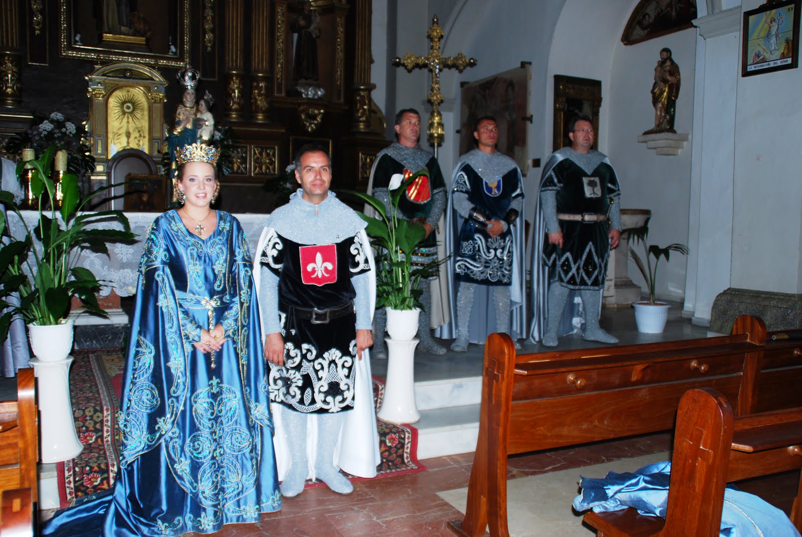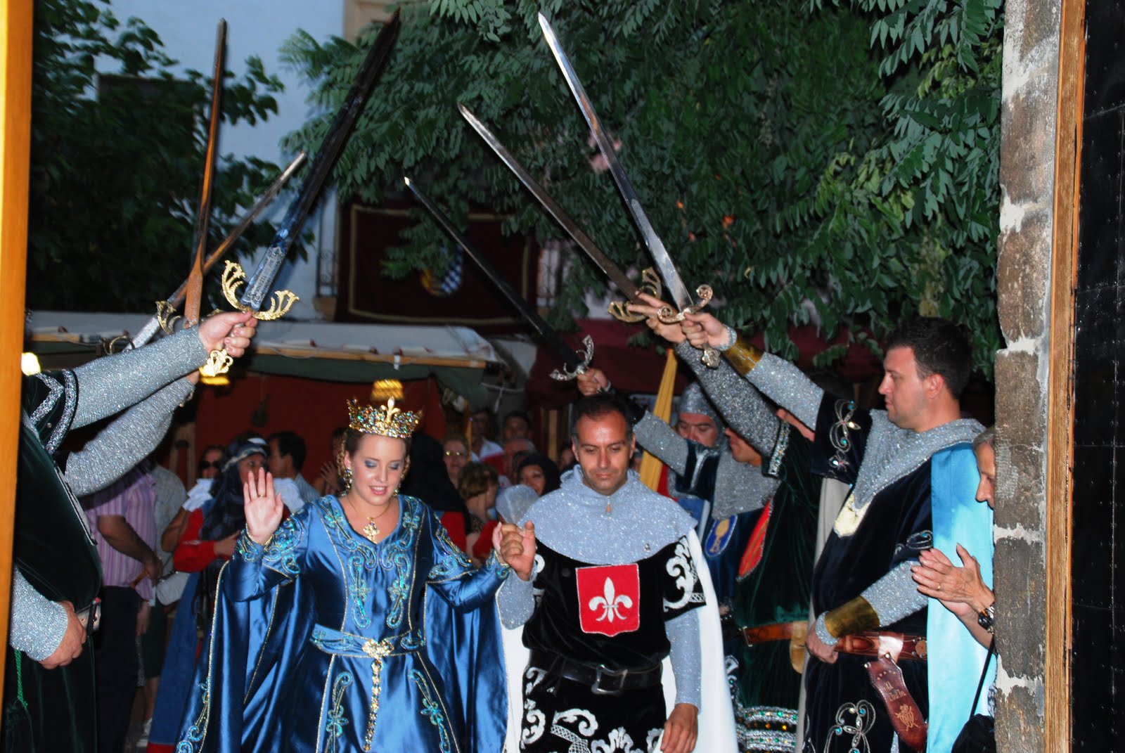 "Els Cavallers" de la Conquesta de Cartellón le hicieron el pasillo de honor con sus espadas, al paso de la Virgen en manos del Rvdo. y a Na Violant D'Hungria junto al Prohom y Las Damas .