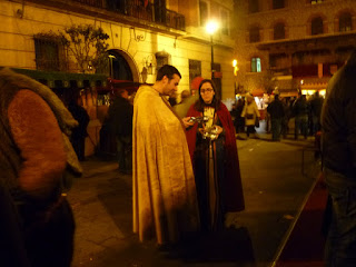 Nos sorprendimos como cada vez hay más, participación en las personas ataviadas de la época ,simplemente por pasear por las calles de Teruel,la imagen era especial por momentos parecíamos estar en el siglo XIII, Familias enteras ,amigos, parejas,niñas,jovenes.Trabajadores de los comercios y restaurantes,etc,etc......